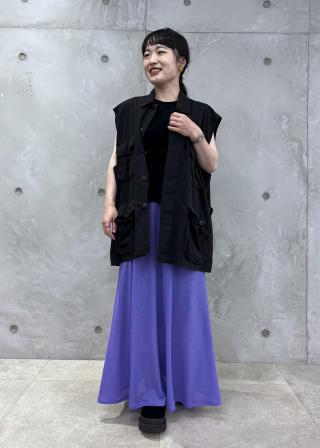 動くたびに揺れる軽やかな素材感と、程よいフレアーシルエットが落ち着いた印象で大人の女性にぴったり。