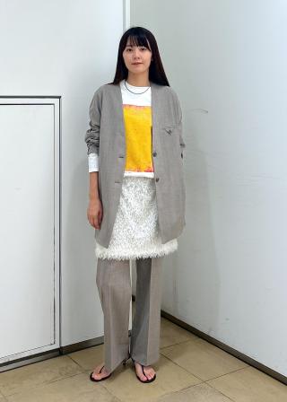 もちろんデニム等カジュアルなアイテムに重ねても素敵です。