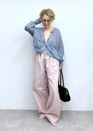 程よいクロップド丈はボトムを選ばず合わせやすく、ワイドシルエットのパンツやボリューム感のスカート合わせでも腰高な印象に◎
