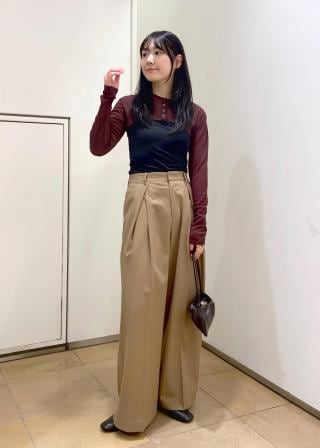 ハイウエストパンツやリラックスボトムとのバランスもよく、カラー合わせでトレンド感アップ。