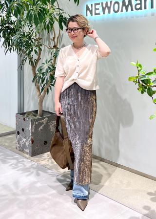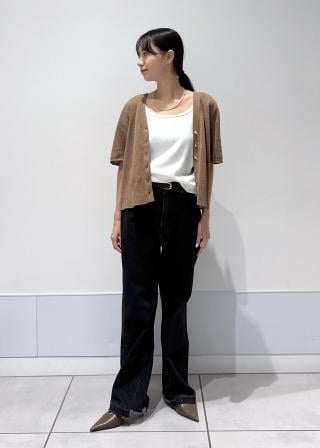 腰骨あたりの短めの着丈で、脚長効果がありつつもバランスが取りやすい長さです。