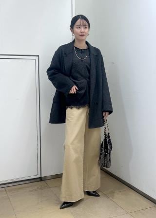 シンプルながら上質感あふれるデザインは、ワイドパンツやタイトスカート、