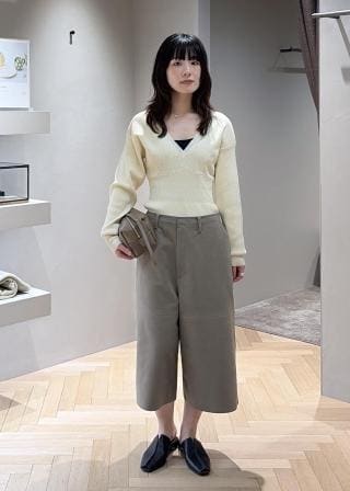 ウエストのリブ編みがやさしくフィットし、すっきりとしたシルエットを演出します。