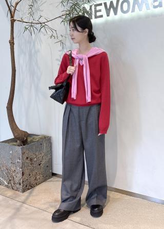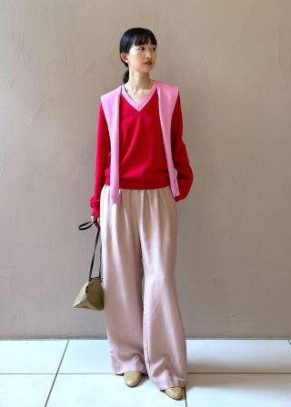 コットンウール素材の鮮やかな色合いが目を引くVネックニット。