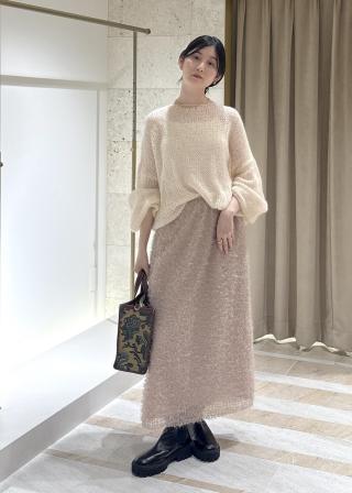 ふんわりシルエットで抜け感を演出し、秋冬の華やぎコーデに最適。繊細スパンコールを散りばめたシアーモヘアニット