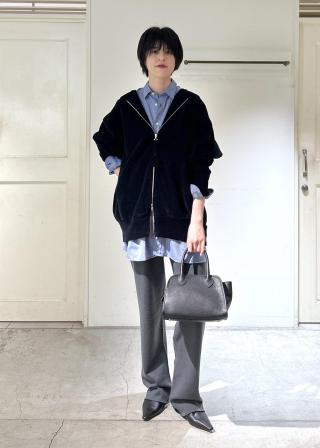 上下どちらからも開閉できる逆開ファスナー仕様で、インナー見せのレイヤードも楽しめるデザインです。