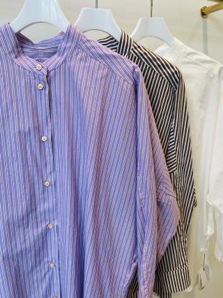 [ドラマ着用]バンドカラーストライプオーバーシャツ