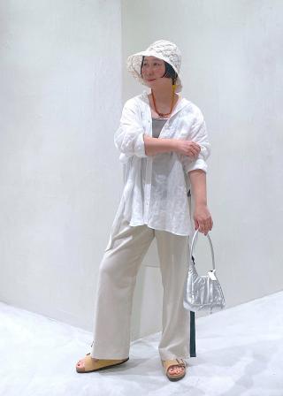 同素材のリネンスカートと合わせたワンピースライクなセットアップでの着用もオススメです。