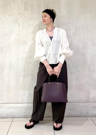 このブラウスとセットアップできるスカートも購入したいと思っています。インナーで雰囲気変わるし、お袖も凄く可愛い。少し肌寒い時には夏でもつかえそうです!