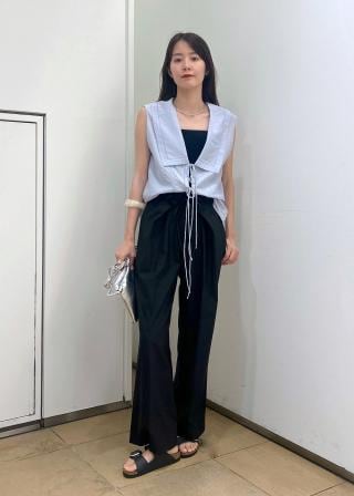 肩周りは程よくカバーしつつ、風通しの良いシルエットで夏の重ね着にぴったり。