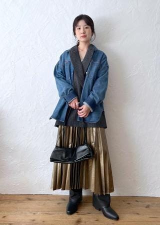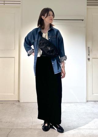 硬すぎず柔らかすぎず、程よいハリのあるデニム素材です。オーバーサイズで抜け感があり、羽織としても使いやすいです。