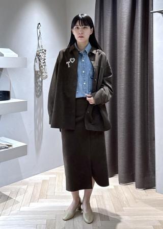 柔らかくも程よくハリ感のあるスウェード素材です。切りっぱなしの仕様が軽やかで大人の抜け感を演出してくれます。
