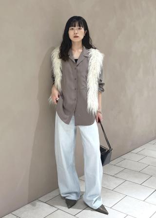 オーバーサイズでヒップも隠れる着丈。開襟が特徴で1枚着でこなれ感が出ます。