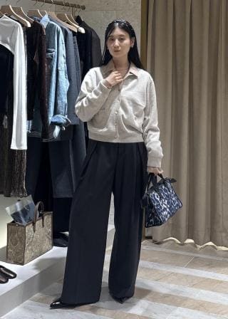 同シリーズのジャンパースカートやパンツとのセットアップスタイルで上品な統一感を演出します。