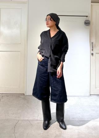 寒い季節にはニットやカットソーとのレイヤードで、シーズンレスに着回しOKです。
