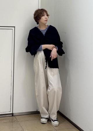全体的にゆったりめ。袖はゴムがついているので捲ってボリューム感ある着方もできます。