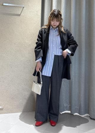 身長171cmで、丈はお尻が隠れるくらいの長さ。サラサラとした肌触りで、ゆったりとしたサイズ感。キレイめなシルエットなのでお仕事ではもちろん、レイヤードもオススメです。