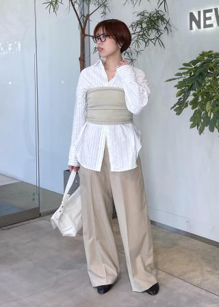 程よくゆとりのあるシルエットながらも、落ち感のある素材でボリュームを抑えた上品な仕上がり。
