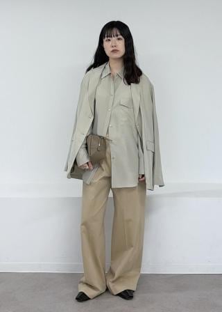 程よくゆとりのあるシルエットで、単体でもセットアップでもスタイリングしやすいデザインです。