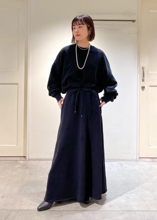 同素材のスウェットスカートとセットアップで着用したスタイリングもオススメです。