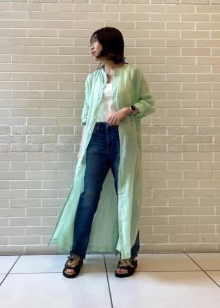 オーバーサイズシャツをサッと羽織って襟を抜いて着たり、シアートップスのインナーに使えばヘルシーに。