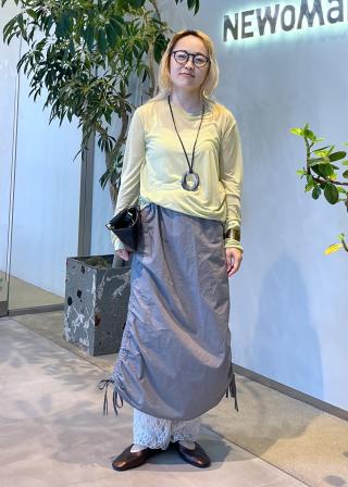 さらりとしていて着心地抜群。ややシアー感もありレイヤードしても一枚でも着回しがきくアイテムです。