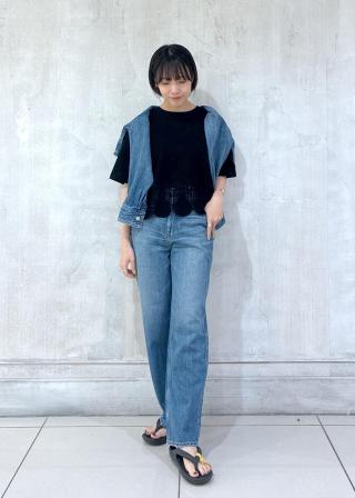 肌触りも優しく、短丈なのでワイドシルエットのボトムスとも合わせやすいです。