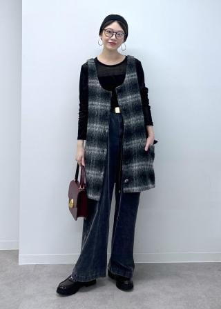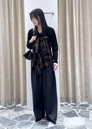 光沢のあるベロアが、着こなしにスパイスを加えてくれて、シンプルながらも季節の変わり目に重宝するアイテムです!