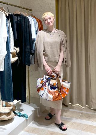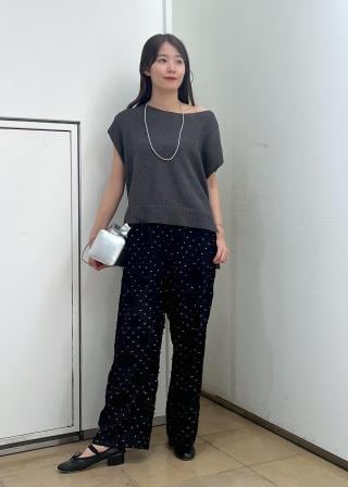 ナチュラルな素材感なので、シルクパンツやサテンボトムスと合わせた異素材ミックスもおすすめ。