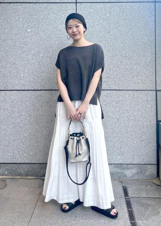 シンプルなデザインは、オフィスカジュアルからリゾートスタイルまで幅広く対応。