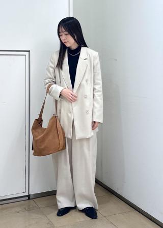 少し長めの袖と着丈が女性らしい印象を引き立てます。