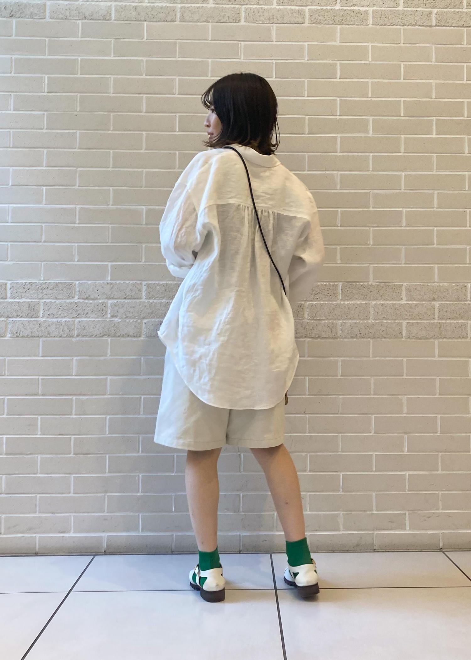 リネンシャツにショートパンツを合わせてhealthyな着こなしに!!