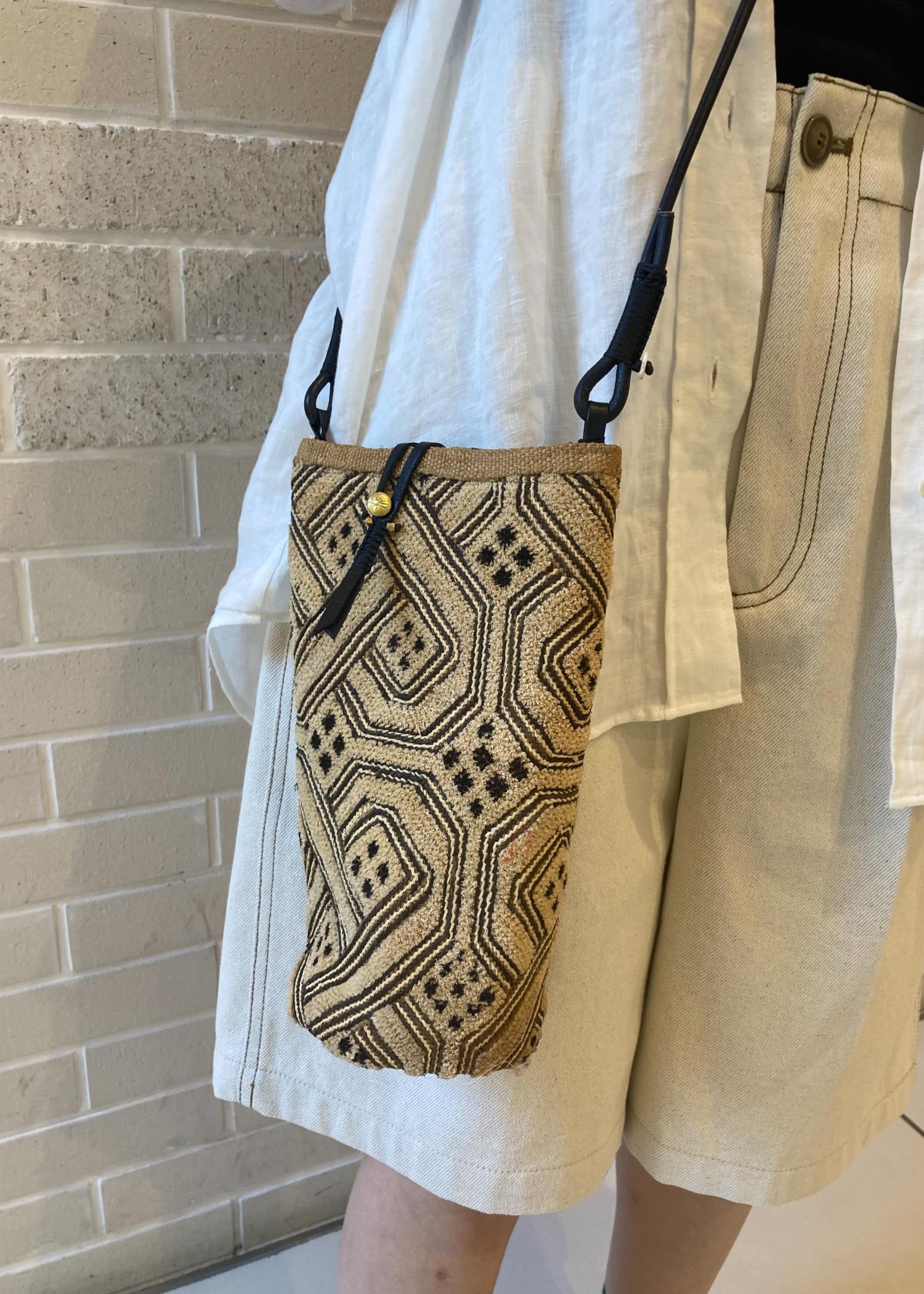 WONDER FULL LIFEのクバ布を使用した小ぶりなバッグをポイントにコーディネートしてみました。