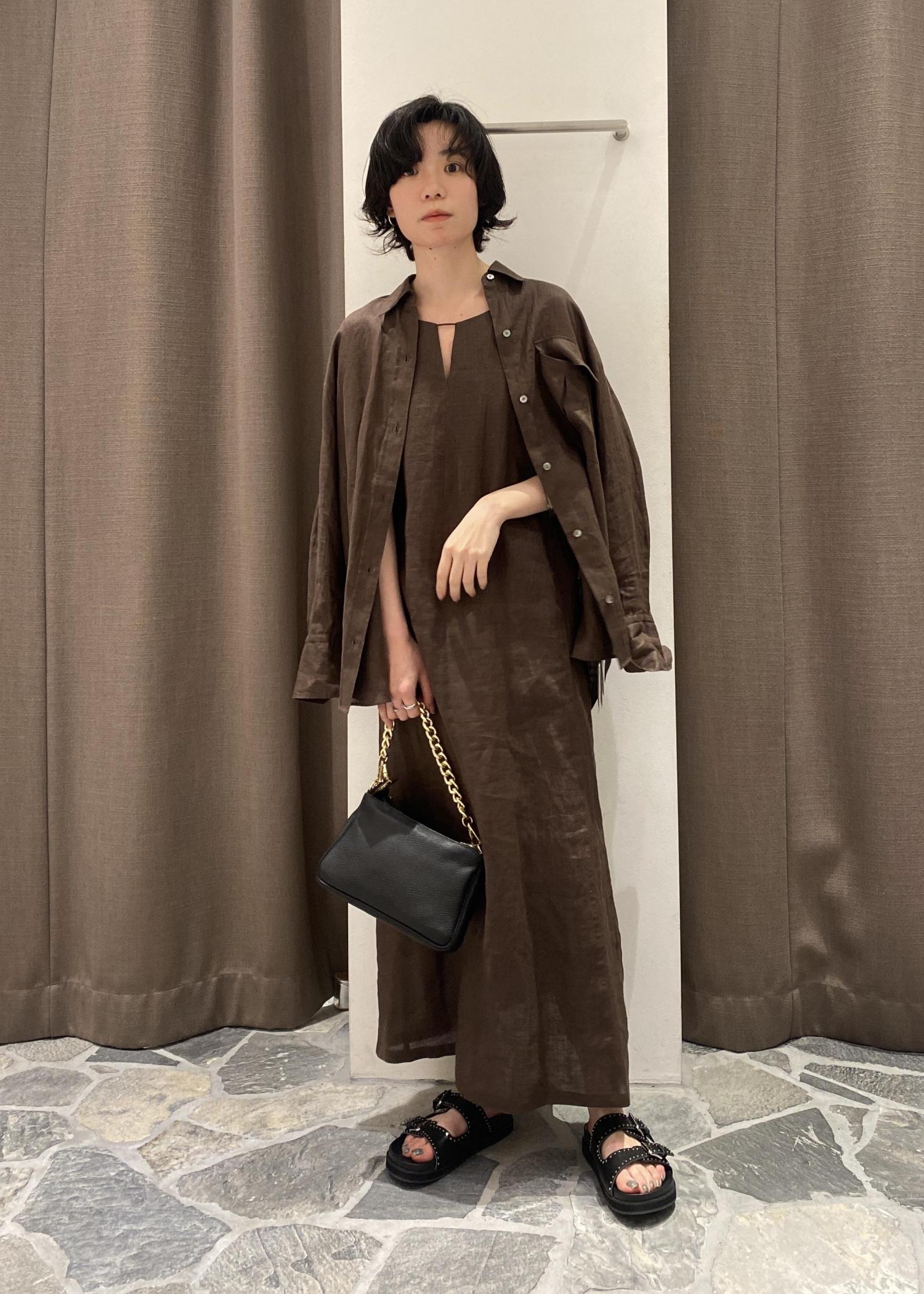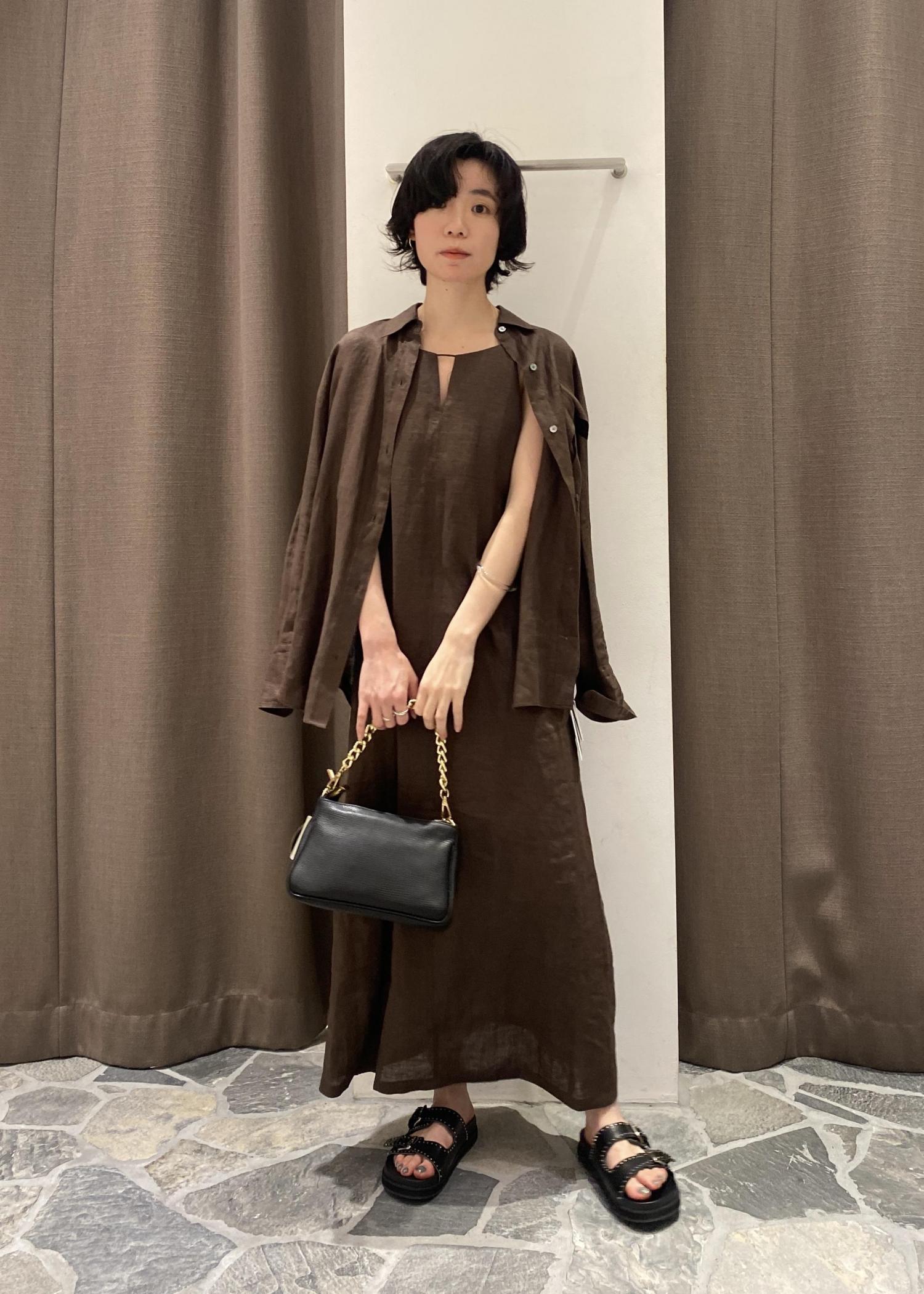 アウトレットSALON adam et ropé【洗える】ノルマンディリネンキャミワンピース/麻ダークブラウン / F¥12,540レビュー【サイズ感】