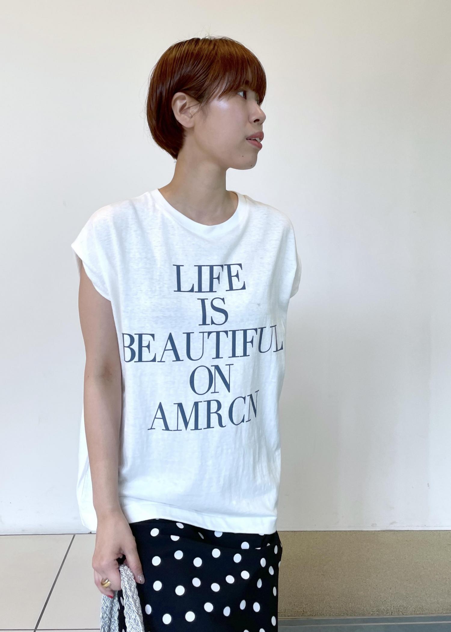 トレンドのドット柄を、AmericanaのTシャツでカジュアルダウン。