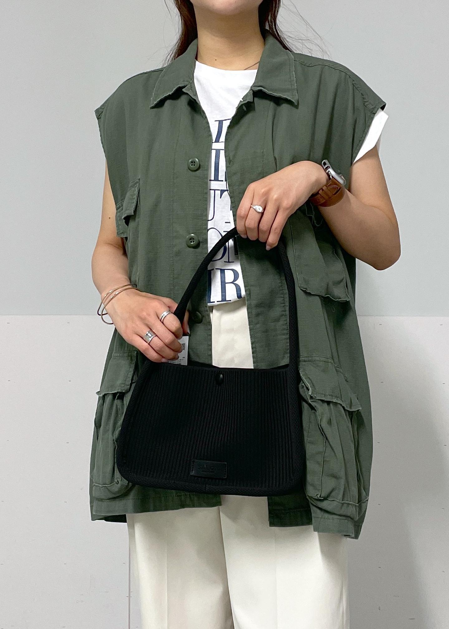 アメリカーナのロゴのTシャツに、カーキのベストをレイヤードして、カッコよくカジュアルにコーディネートしました!