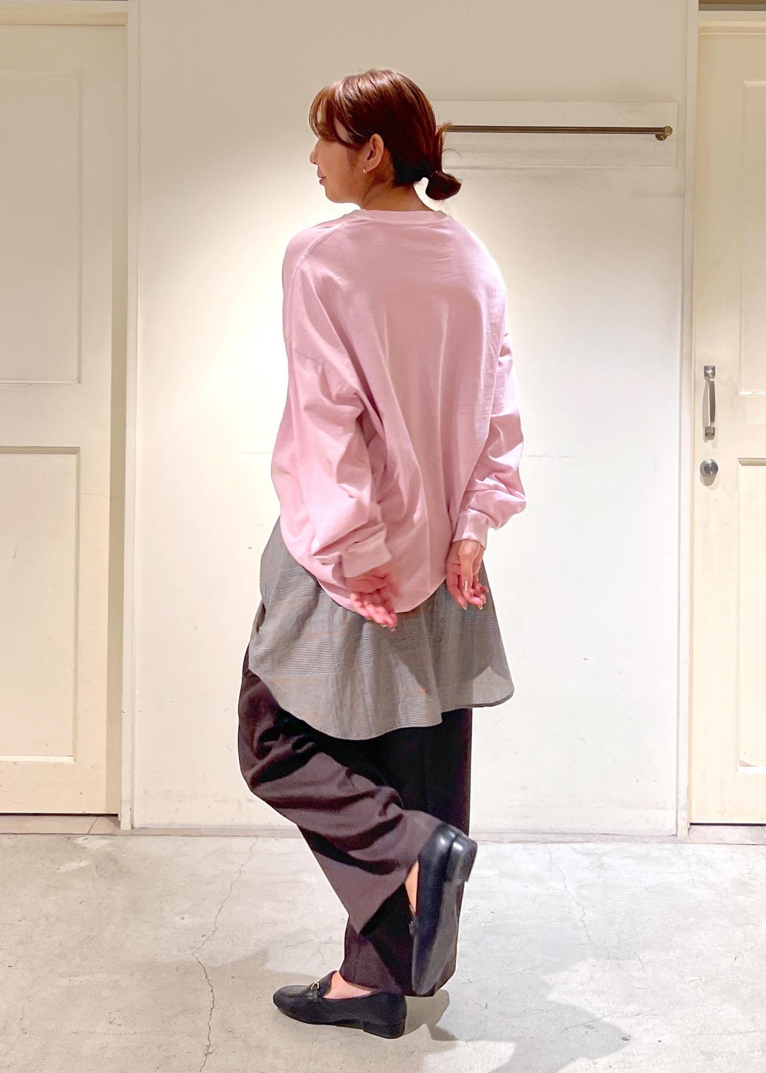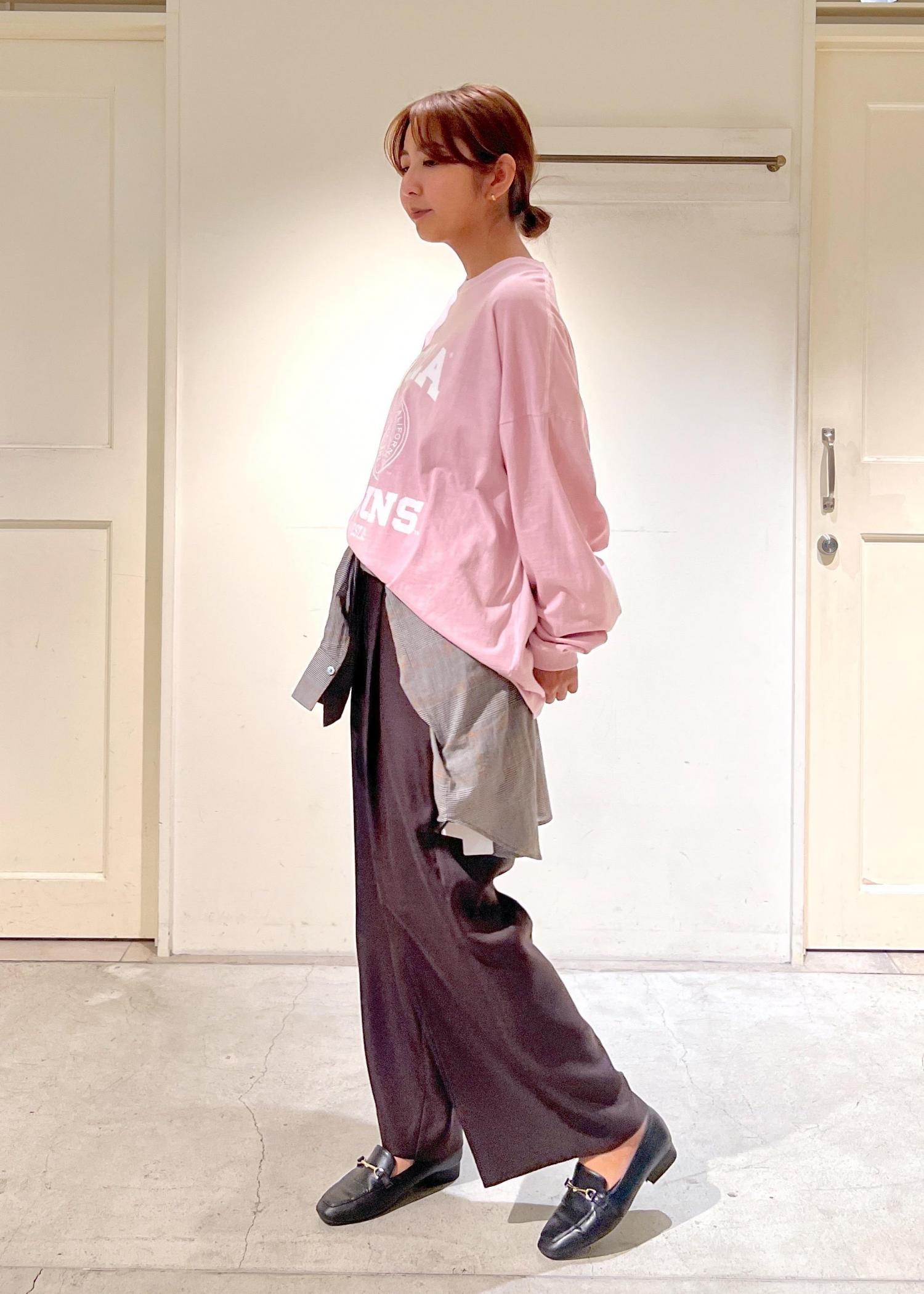 古着っぽい雰囲気があるロングTシャツ。着丈などもたっぷりあるのでラフに着れるのが魅力的です。インでもアウトでも可愛いです!