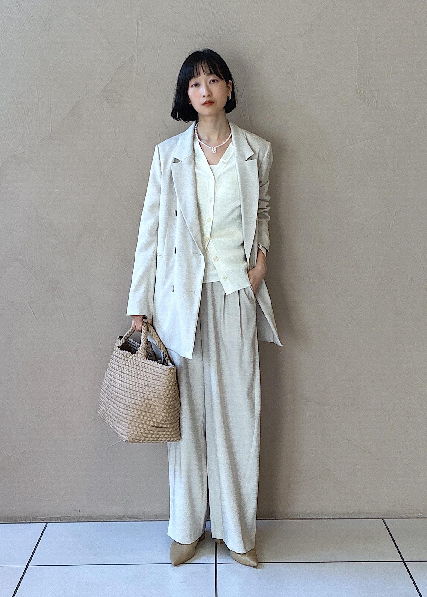 FOXWOOLカーディガン×ジョガーパンツ。