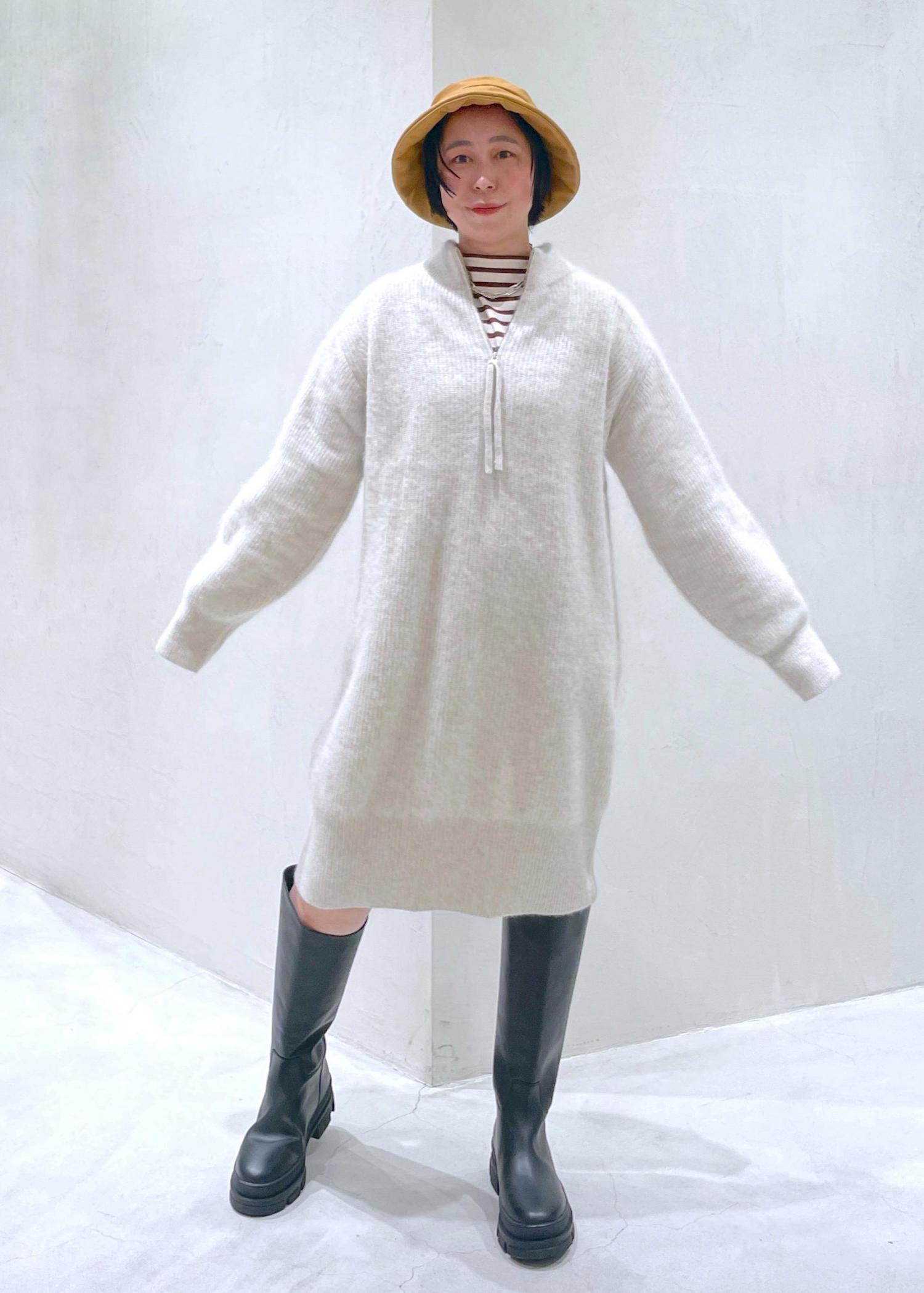 154cmの私が着ると丁度ひざ丈になるので、ロングブーツと合わせると程よい丈館になりました。