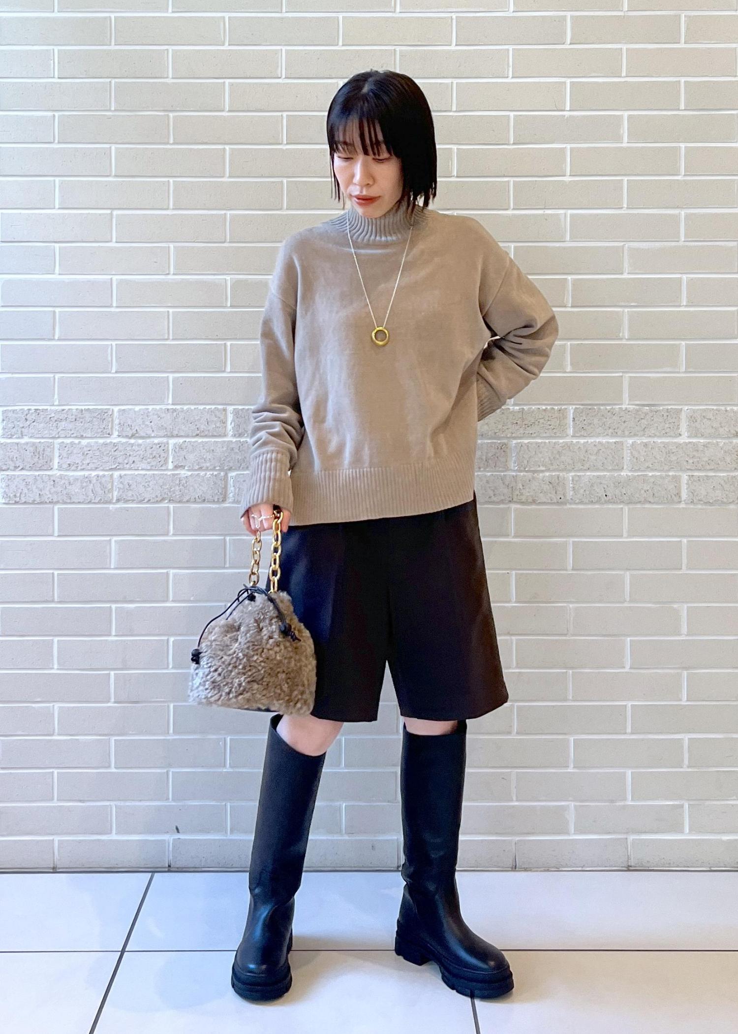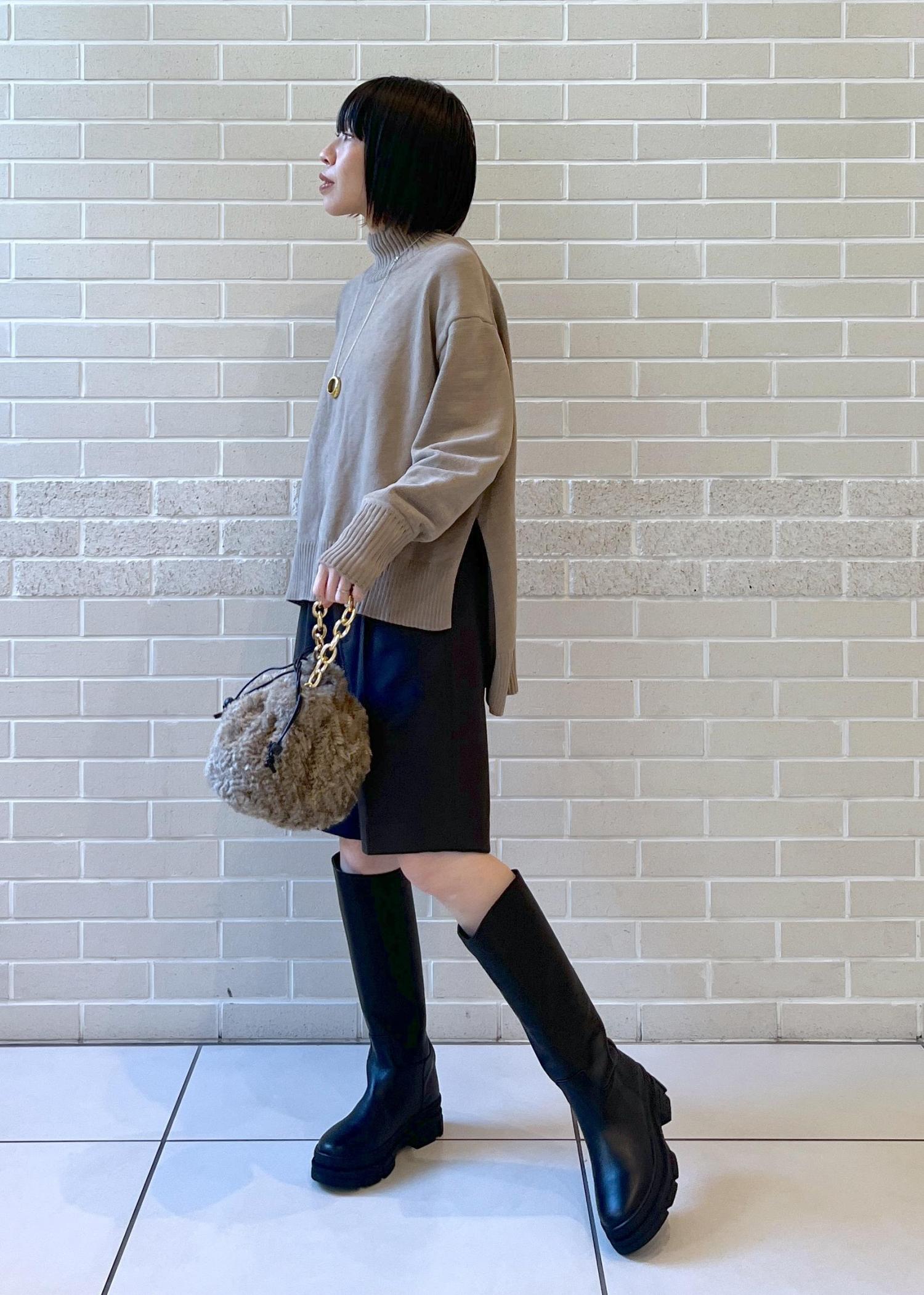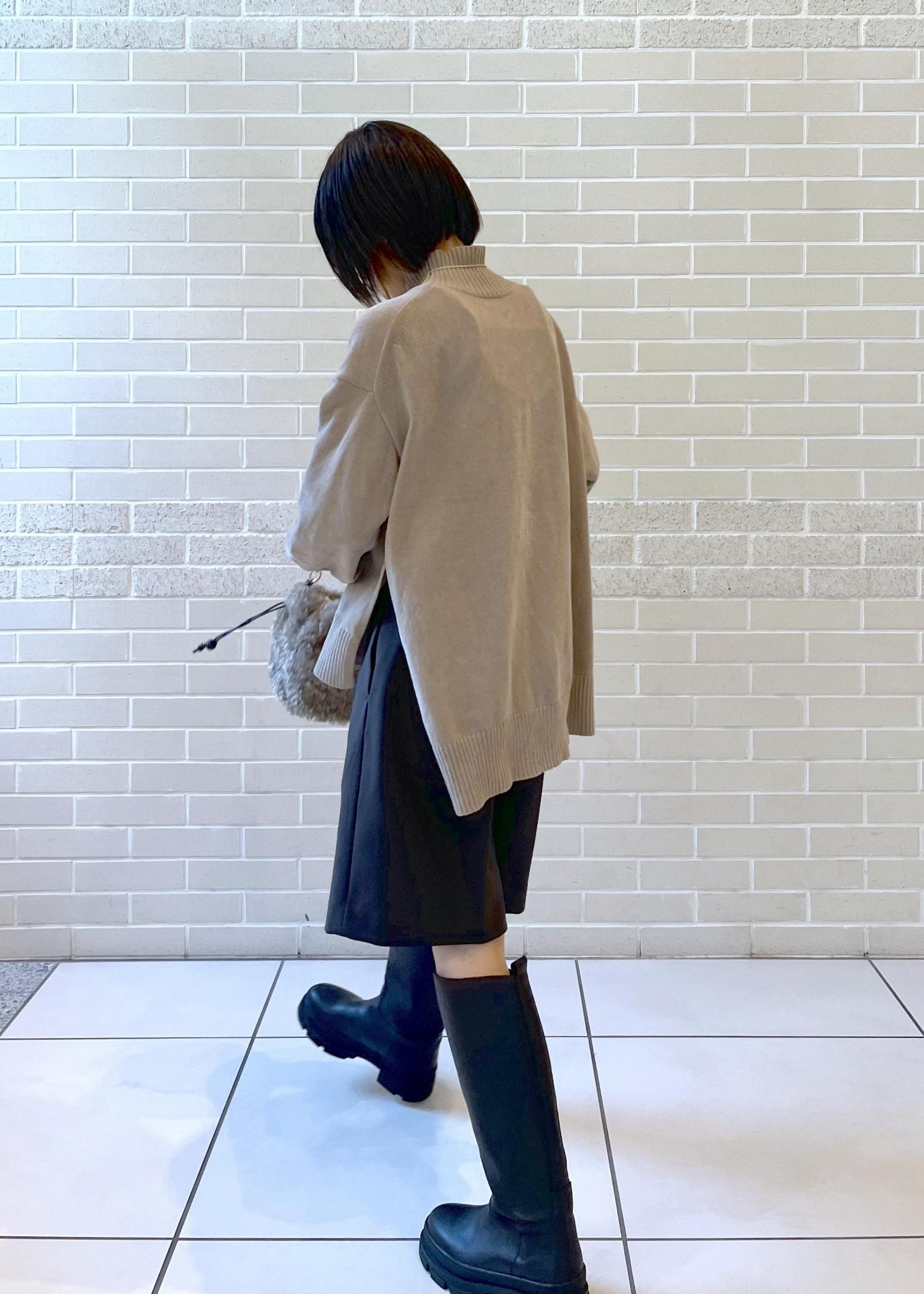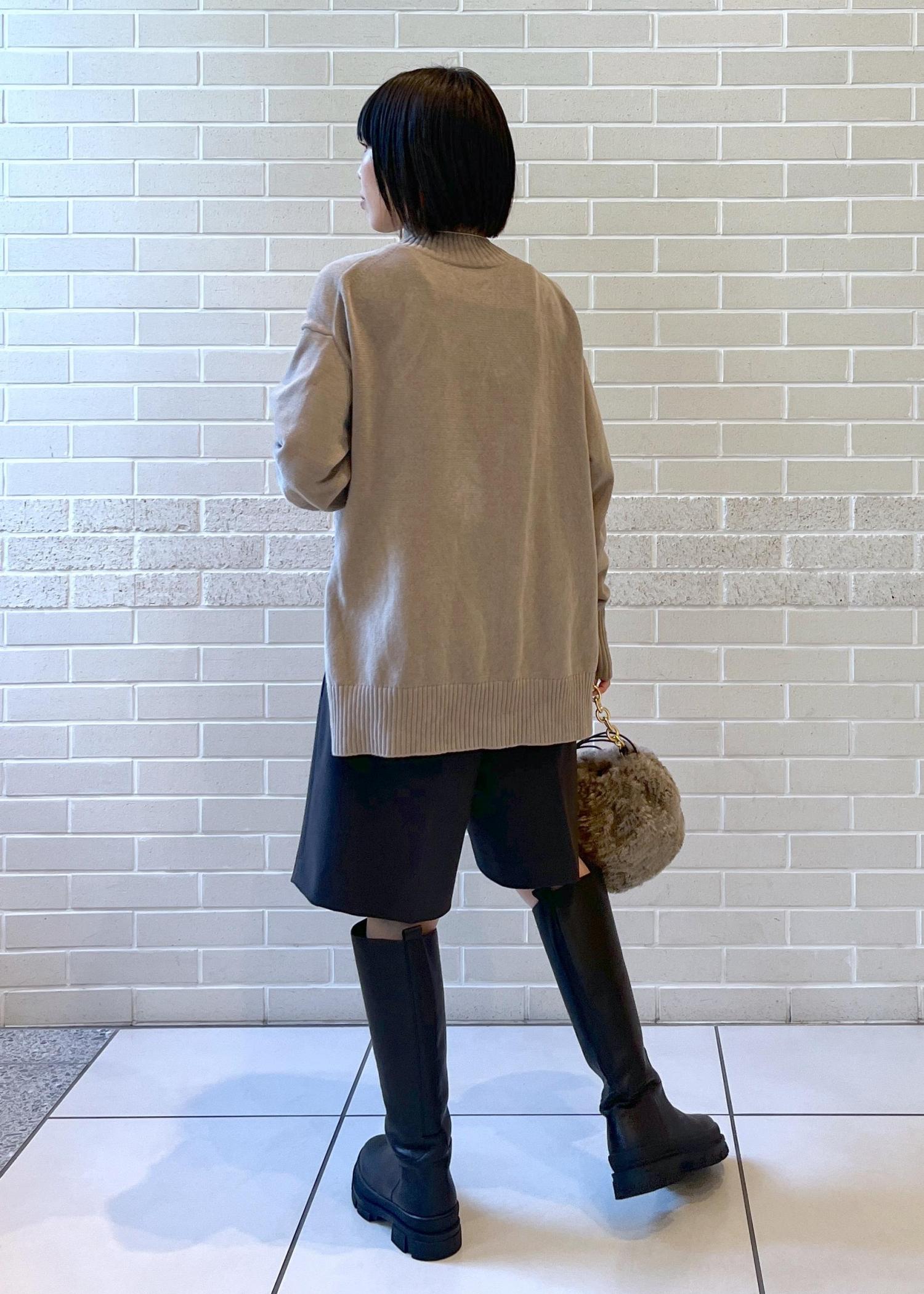 前は着丈スッキリ、バックはヒップがやや隠れる丈感。パンツ、スカートどちらもバランスよく着こなせます◎