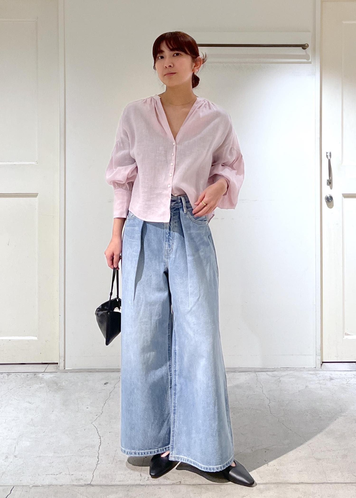 カジュアルなトラックパンツですが、すとんと落ちるシルエットで綺麗めなアイテムとも合わせやすいです。