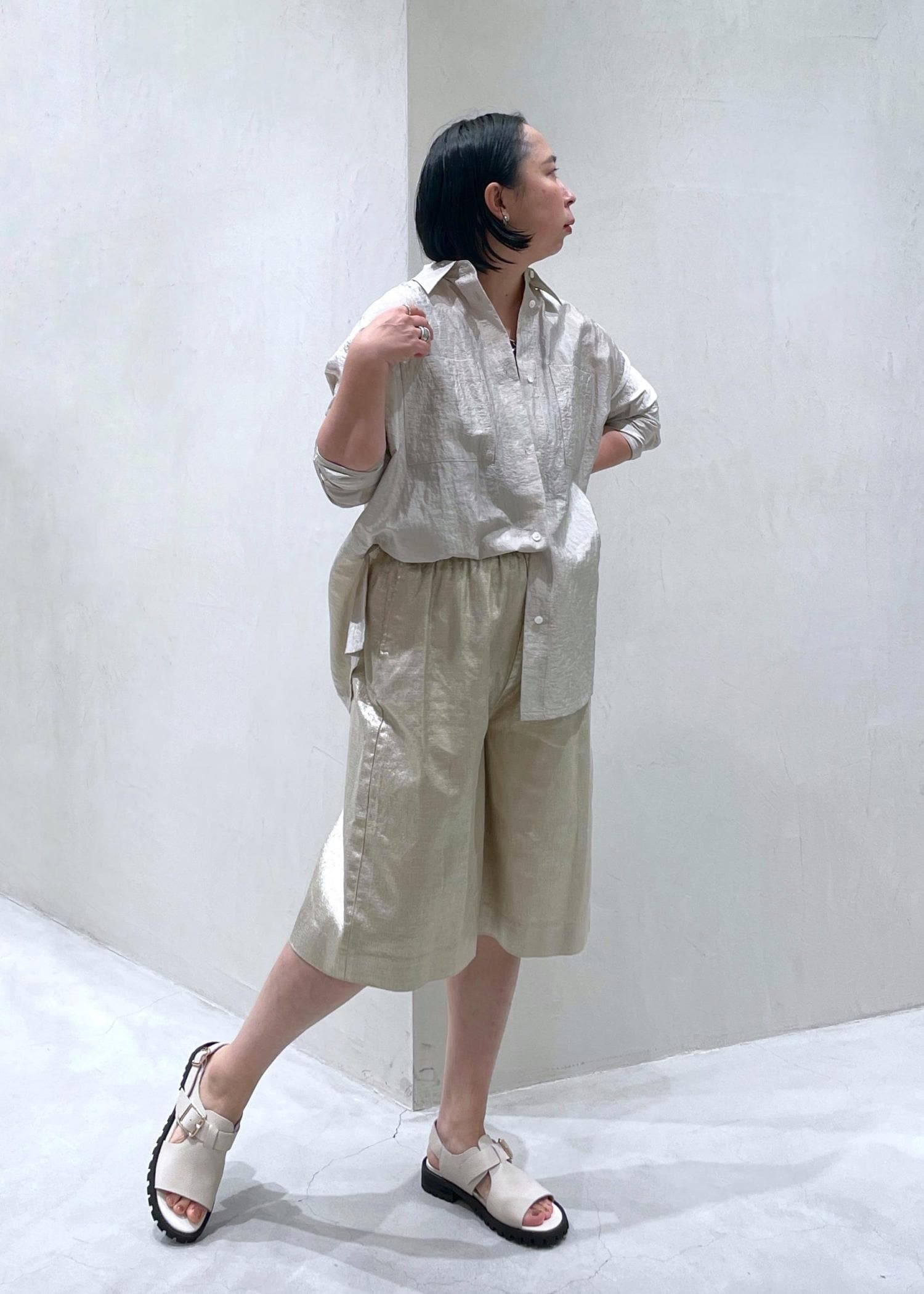 アウトレットSALON adam et ropé[24SS]【Americana for SALON】別注箔プリントイージーバミューダパンツシルバー / F¥14,520レビュー【サイズ感】