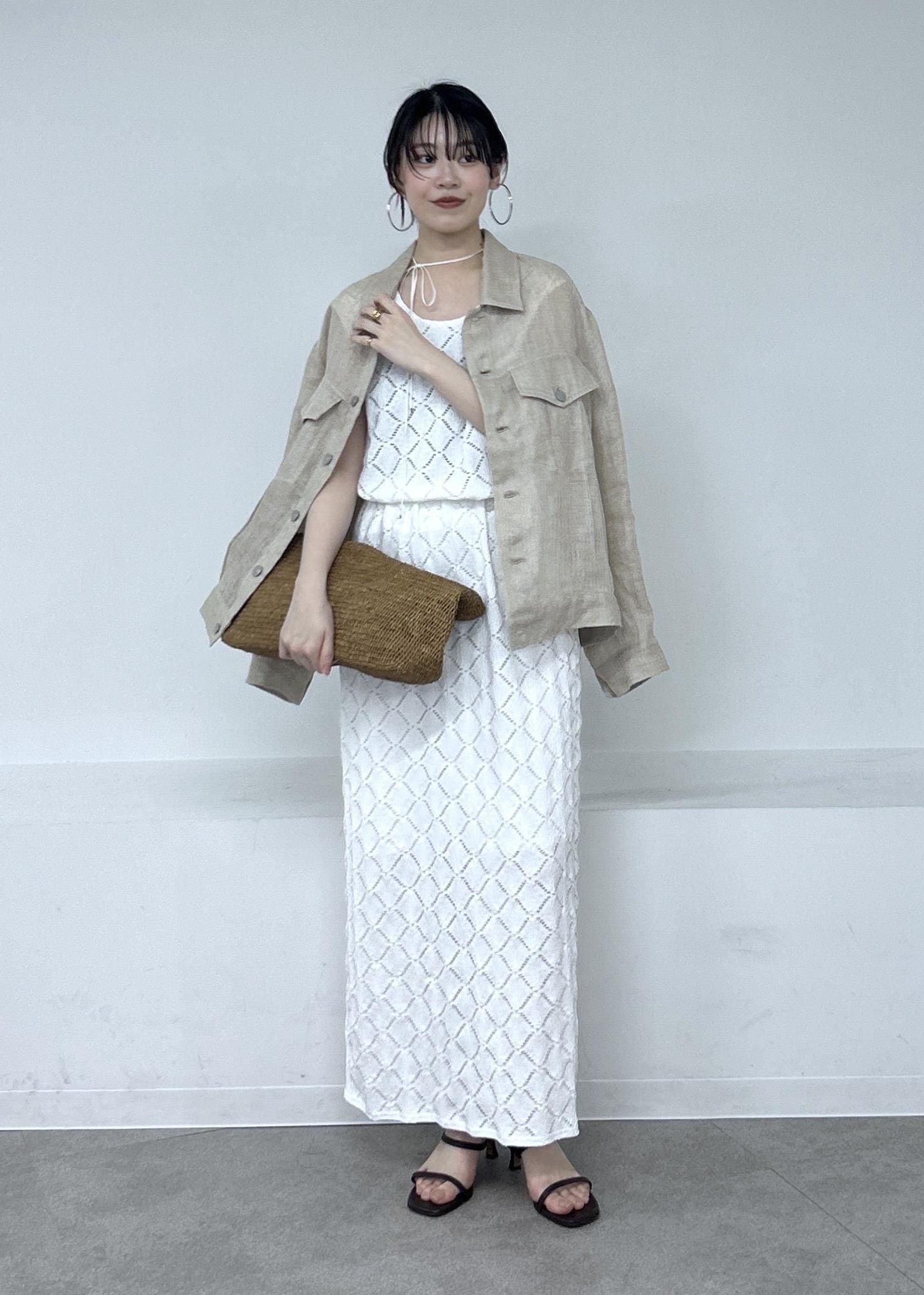 私はシアーのカーディガンと合わせて軽やかにまとめました!