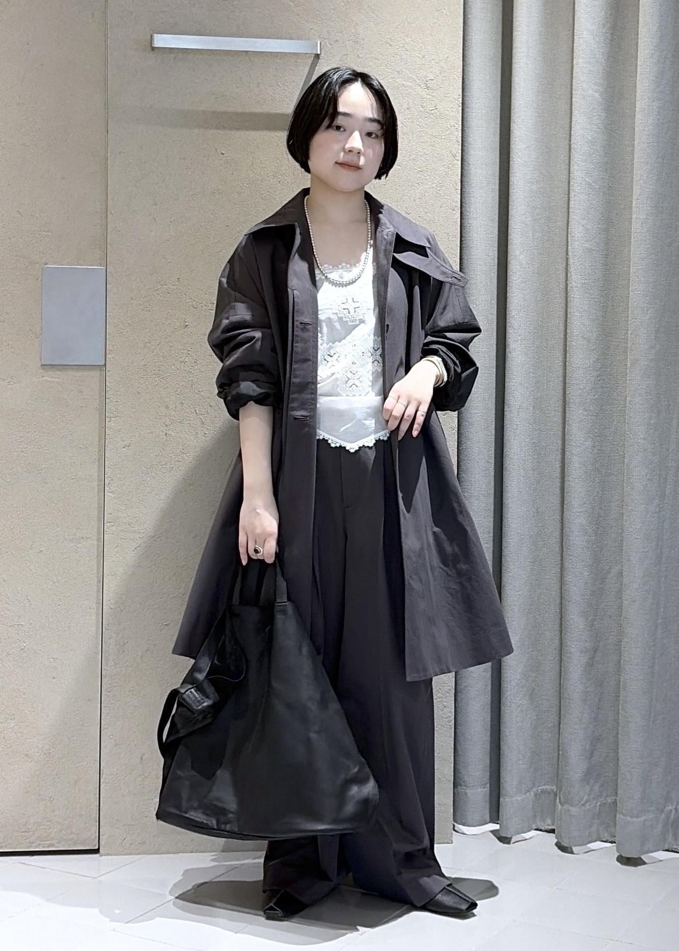 ボトムスには撥水加工がされているカジュアルなパンツを合わせてことで甘くなり過ぎないようにしてみました!
