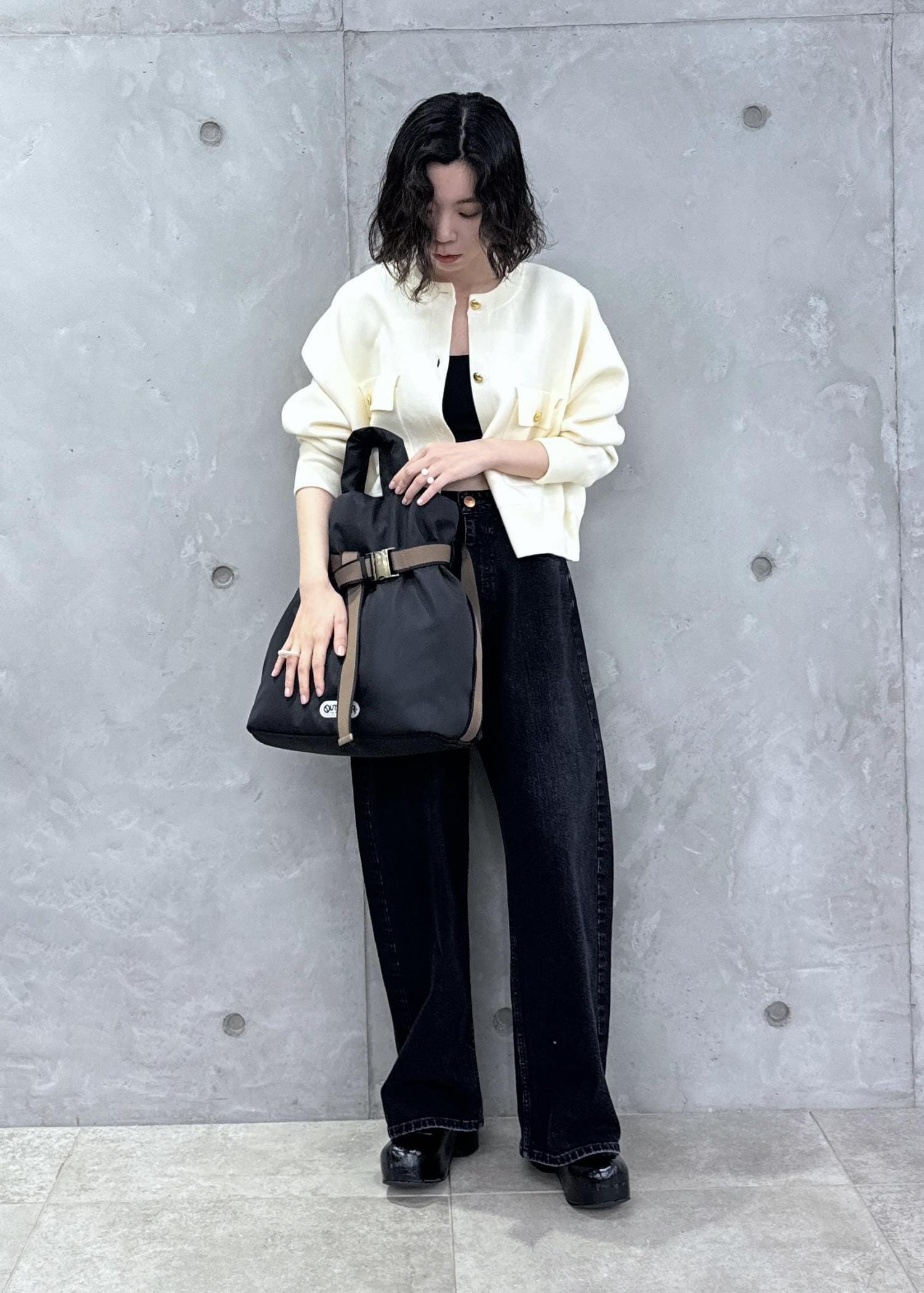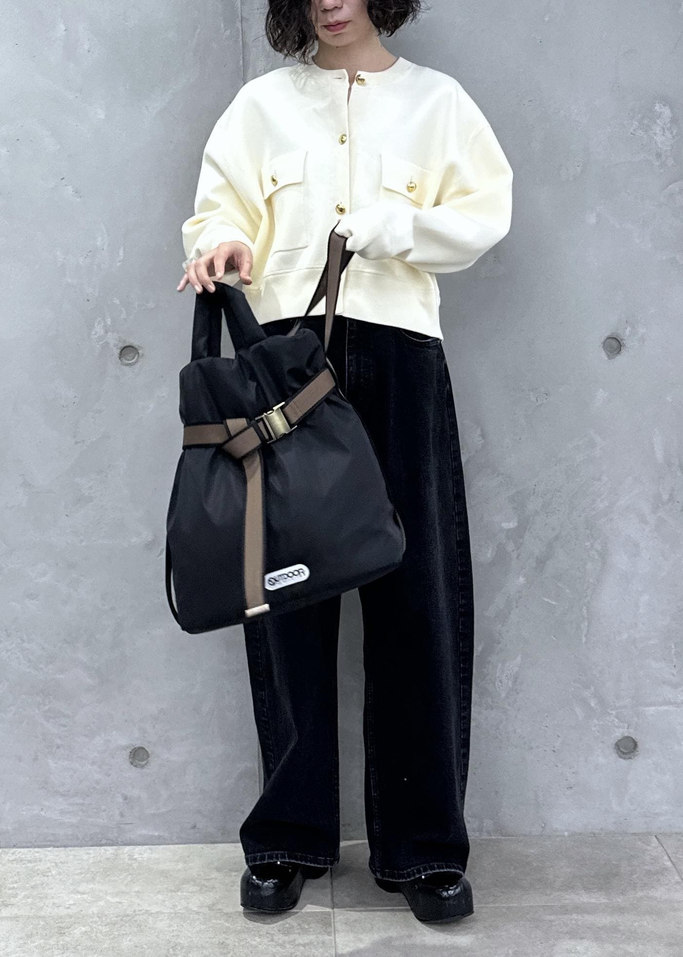 ショート丈が活きるようにワイドデニムで合わせてみました◎