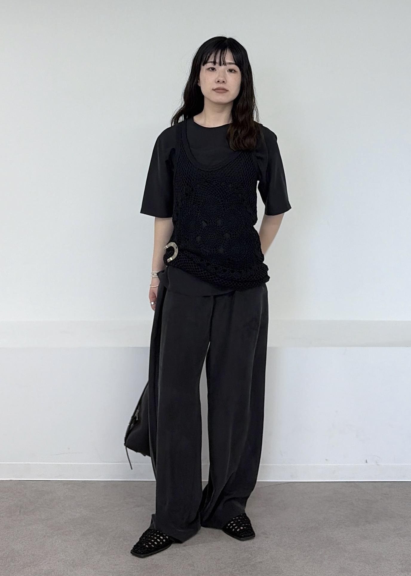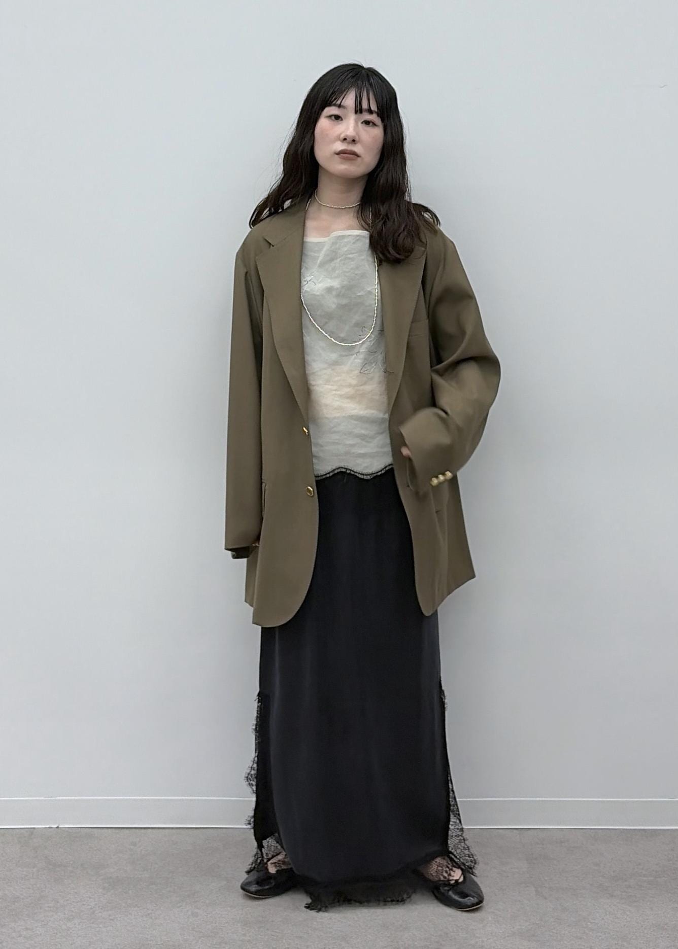 ルーズ感あるシルエット。袖口と裾はブラウジングできるデザインです。