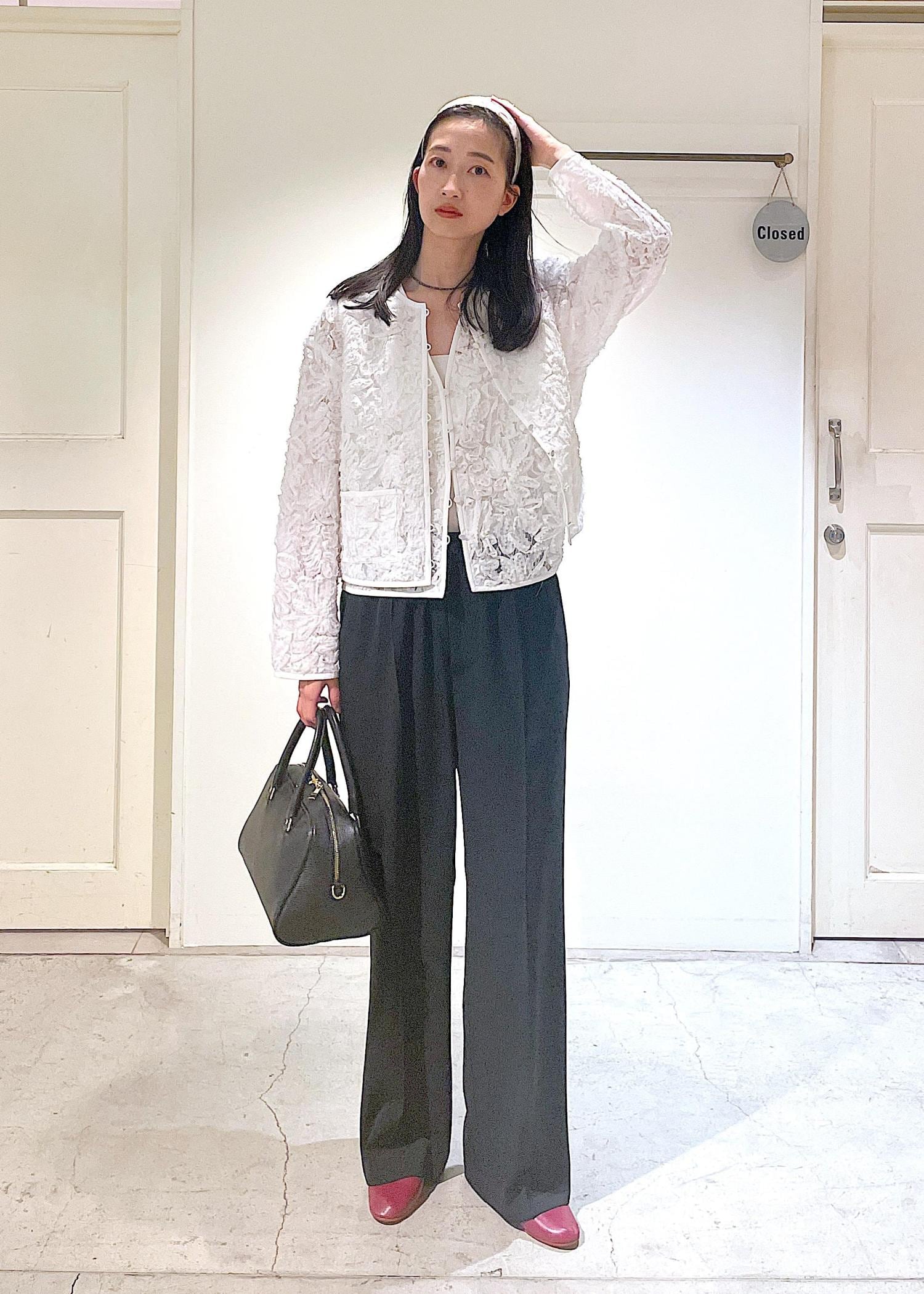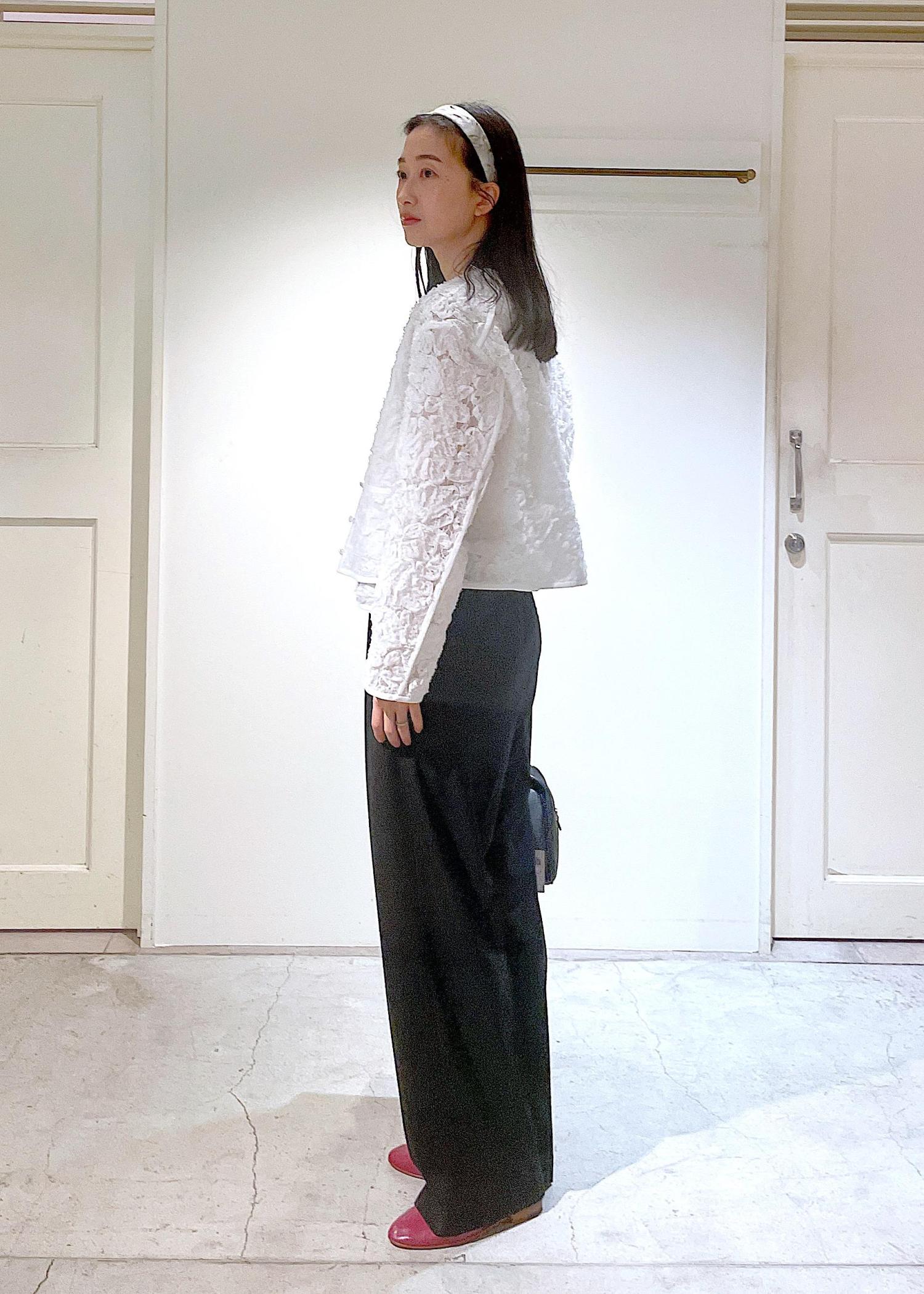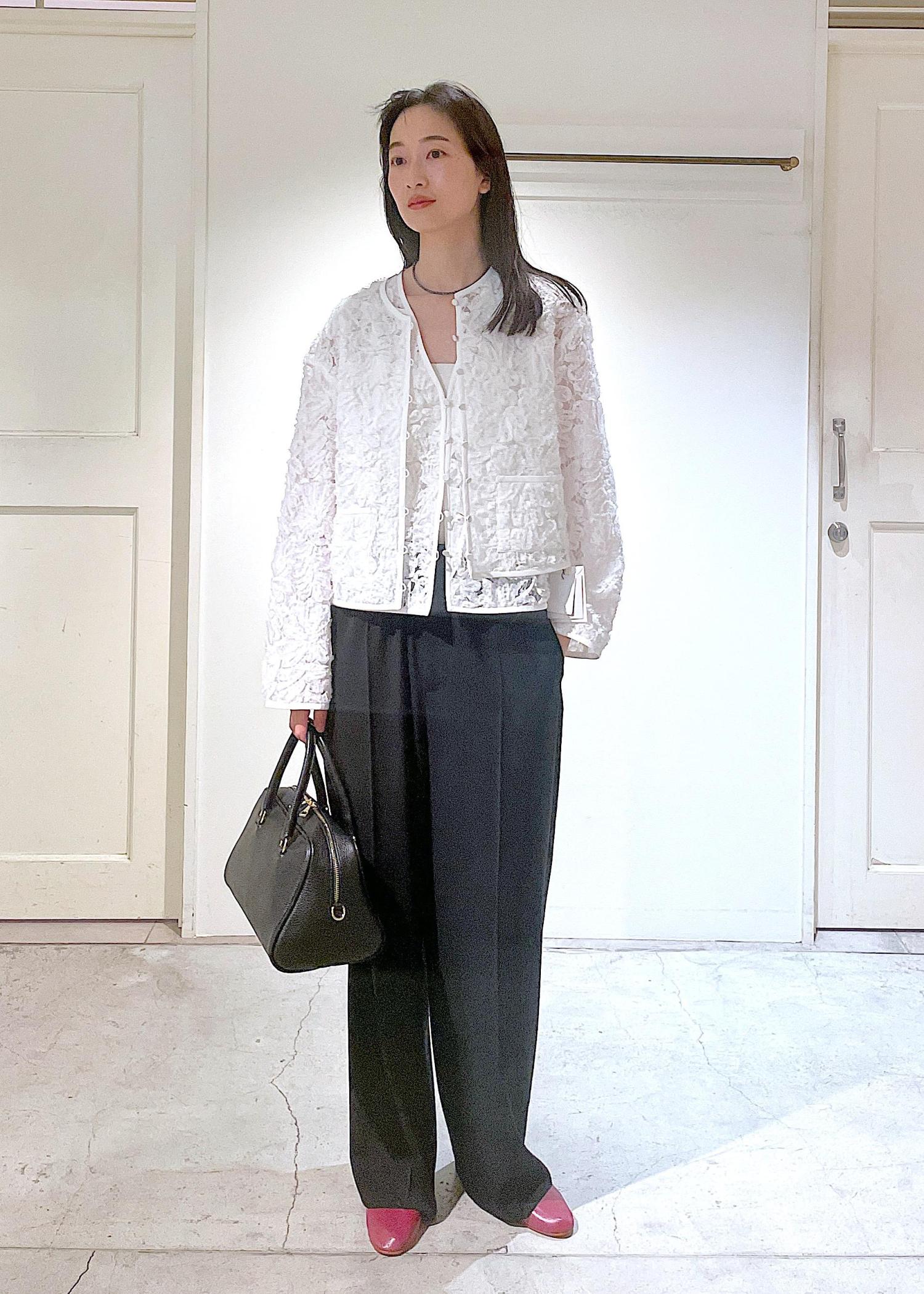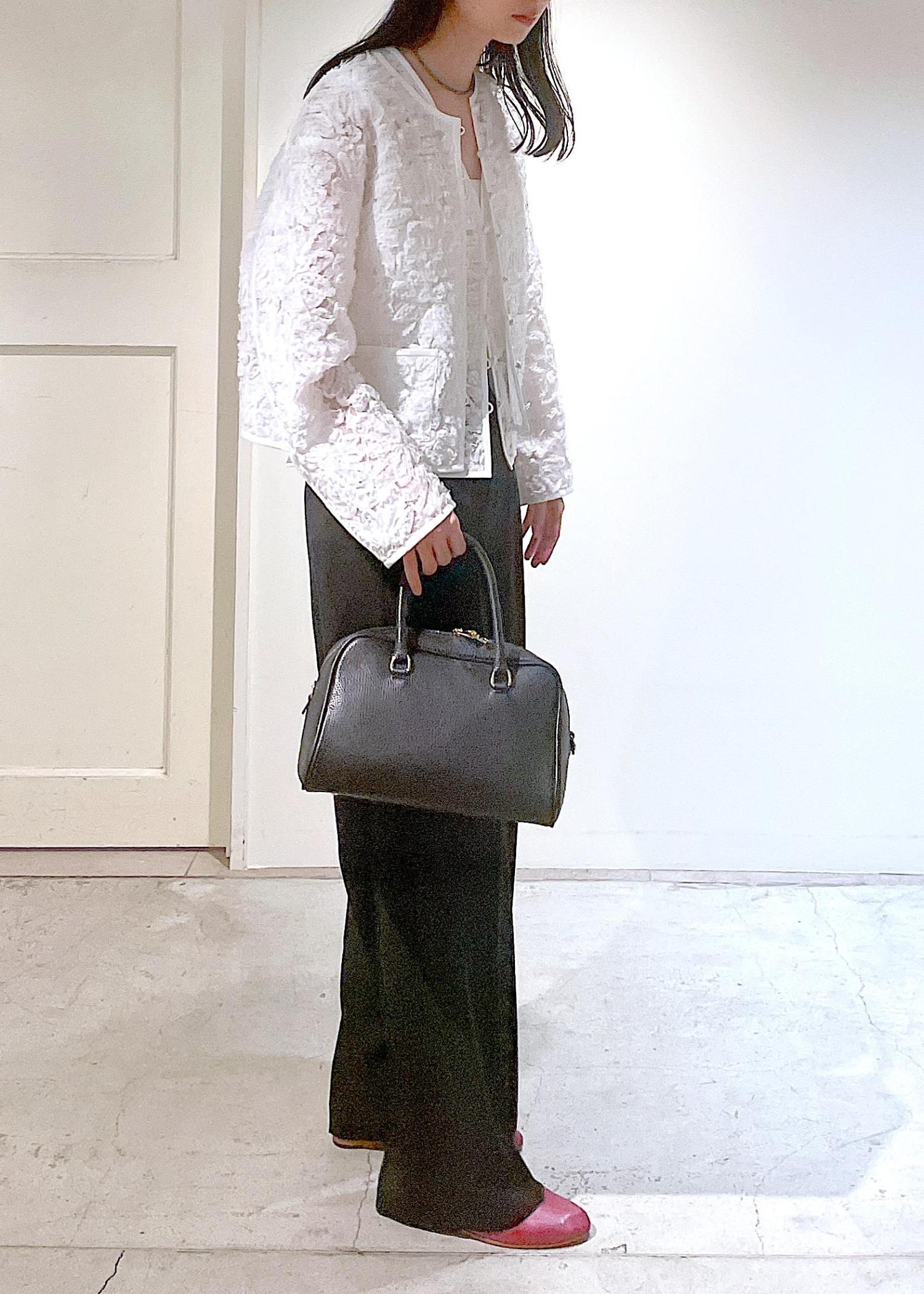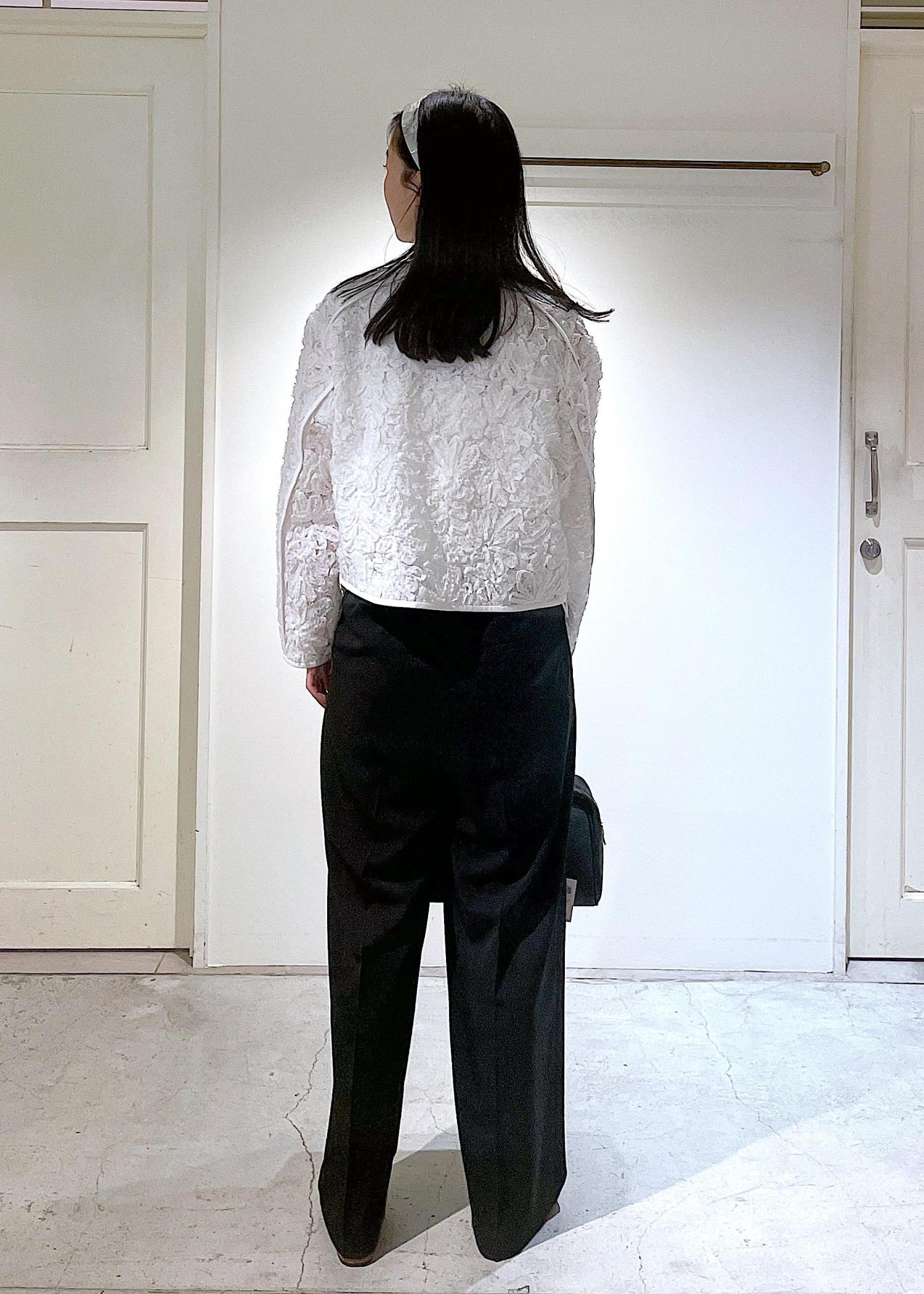 セレモニーなどフォーマルなシーンで活躍するフラワーフリルジレとノーカラージャケット!