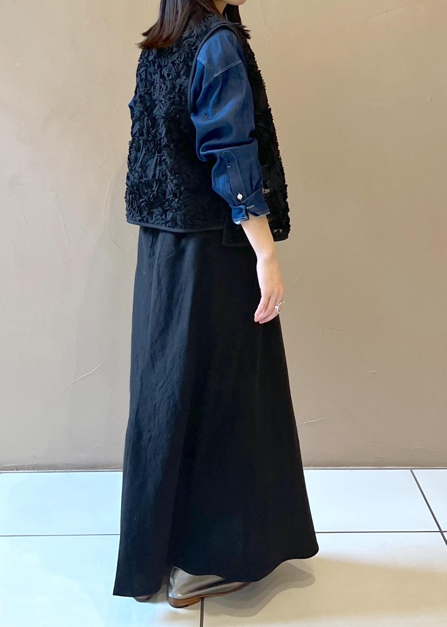 アウトレットSALON adam et ropé【セットアップ対応】リネンドンゴロススカートブラック / S¥17,820レビューウエストがやや大きめだったので1つ折り返して着用しています。折り返して履くとくるぶしくらいの丈感なのでフラットシューズでもokな丈感です◎