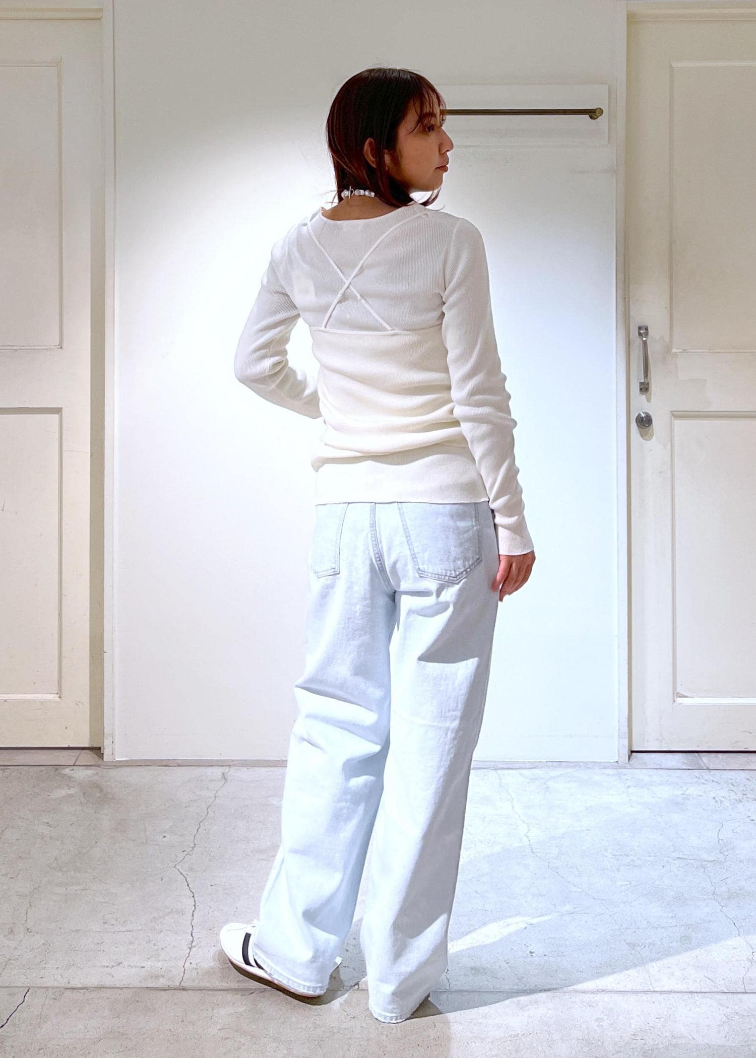 ホワイトは透け感があります。柔らかくやや薄手な素材で、細いリブ素材です。 -