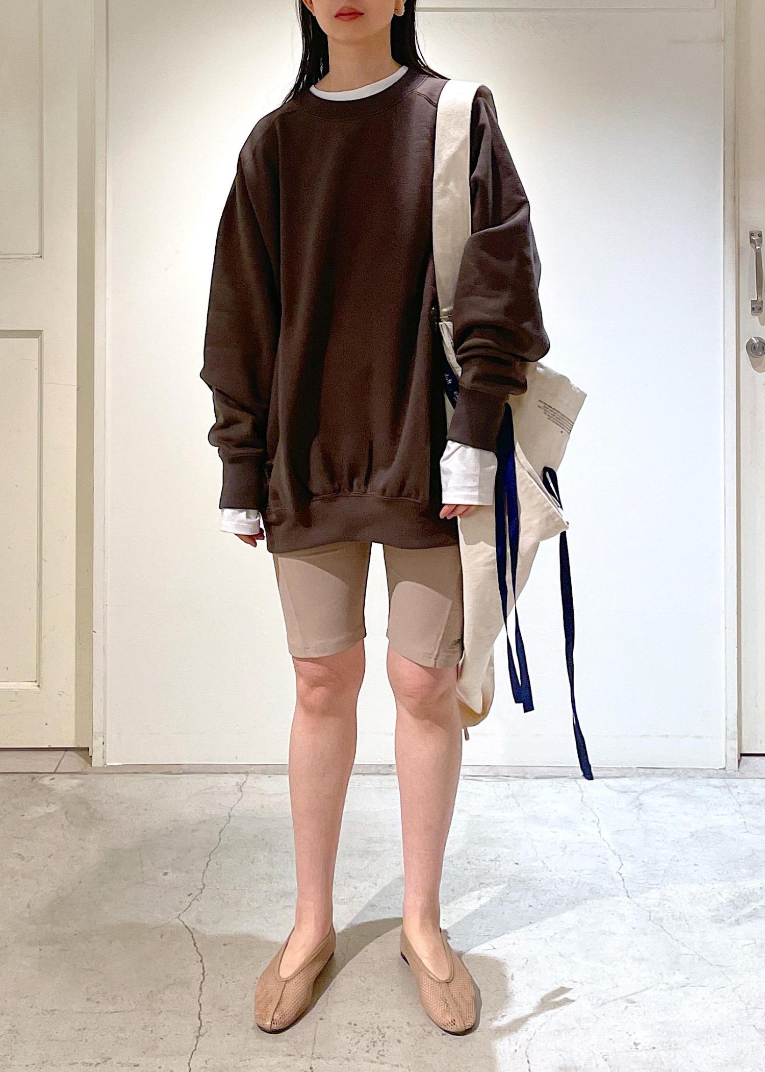 オーバーサイズのスウェットとAmericana別注サイクリングパンツを合わせました。